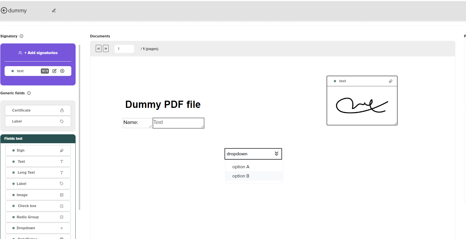 | base64file (string) | required without "template_id" | The content of the pdf file, encoded in base64. Tecalis Signature only admit pdf files to sign, check pdf-utils conversion/to-pdf method if you want to convert a file to pdf |